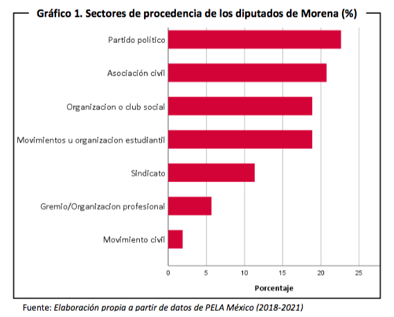 En Morena el partido político no es el principal agente de reclutamiento para cargos electivos, ya que comparte esta función casi en la misma proporción con asociaciones civiles, organizaciones sociales y movimientos estudiantiles.