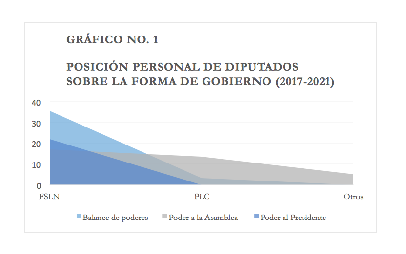 Por último, en el grupo de los partidarios por el balance de poderes entre legislativo y ejecutivo (40,7%), el 35,6% pertenecía al FSLN, lo que es interesante si se tiene en cuenta la disciplina partidaria antes mencionada. A pesar de lo anterior, aparece un importante número de funcionarios sandinistas (22,1%) en el grupo que se manifiesta a favor de que el incumbent concentre el poder (23,8%), mientras un 18,7% (PLC y otros) tomó partido por la Asamblea (35,7%). (Consultar gráfico).
