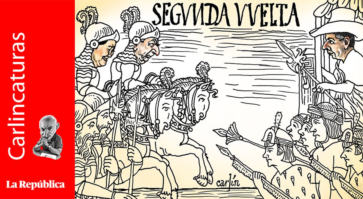Una caricatura de Carlos Tovar en La República muestra a Castillo liderando una resistencia incaica contra una embestida de conquistadores a caballo liderados por su rival en la segunda vuelta, Keiko Fujimori, y Mario Vargas Llosa, que ha pedido el voto para ella porque la considera “el mal menor”. El paralelismo era intencional: en Cajamarca Pizarro capturó a Atahualpa, último inca del Tahuantinsuyu.