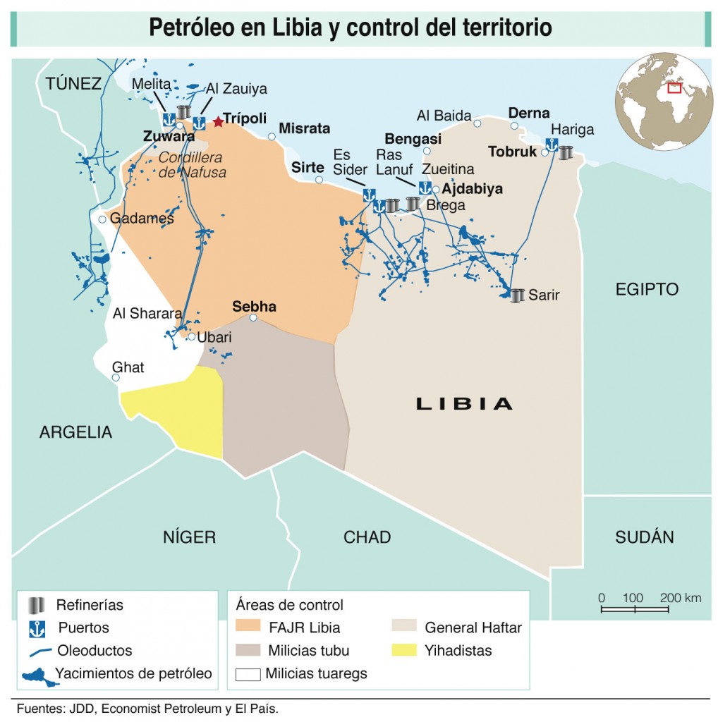 La segunda guerra civil de Libia empezó en torno al petróleo y actualmente se libra en gran parte alrededor de los puertos petroleros. El 25 de diciembre, fuerzas de Amanecer de Libia (con la notable excepción de algunas de las más destacadas milicias de Misrata) lanzaron la Operación Amanecer para hacerse con el control de la “media luna petrolera” alrededor de Es Sider y Ras Lanuf, donde se encuentran algunos de los mayores puertos petroleros. Su intento fracasó gracias al contraataque de los “federalistas” de Jadran y a la potencia aérea de Heftar. A pesar de su aparente fracaso, la operación marcó una escalada más en el conflicto, pero también mostró las primeras fracturas significativas entre Misrata, donde predominaba la oposición a la operación, y el Congreso General Nacional de Trípoli, que la promovió. Las mismas fracturas se han puesto de manifiesto en la participación en las conversaciones celebradas en Ginebra bajo los auspicios de la ONU.