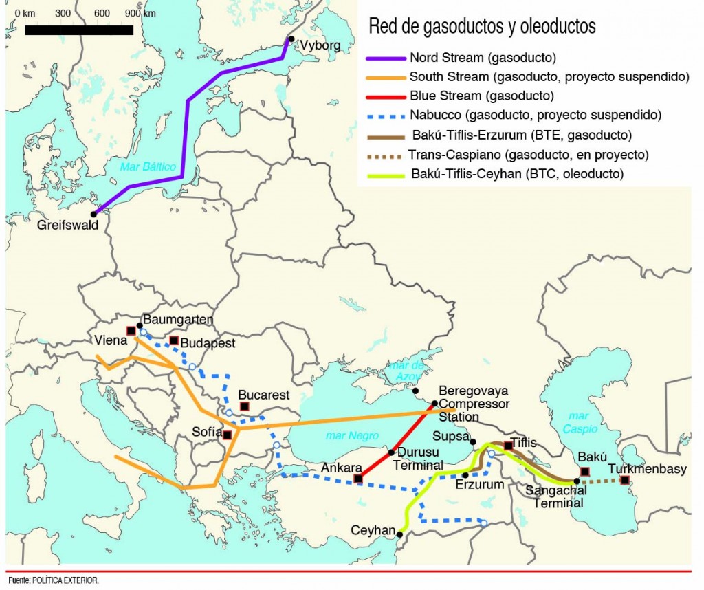 «Rusia quiere seguir manteniendo a toda costa su papel de llave energética para Europa occidental, pero las tensiones políticas están llevando a Moscú a tratar de depender menos de un país de tránsito como Ucrania, aunque esto le obligue a apostar por otro, Turquía, y a intentar diversificar sus clientes, mirando para ello hacia Asia, especialmente China». Carlos Echeverría Jesús. Europa y la dependencia de hidrocarburos.