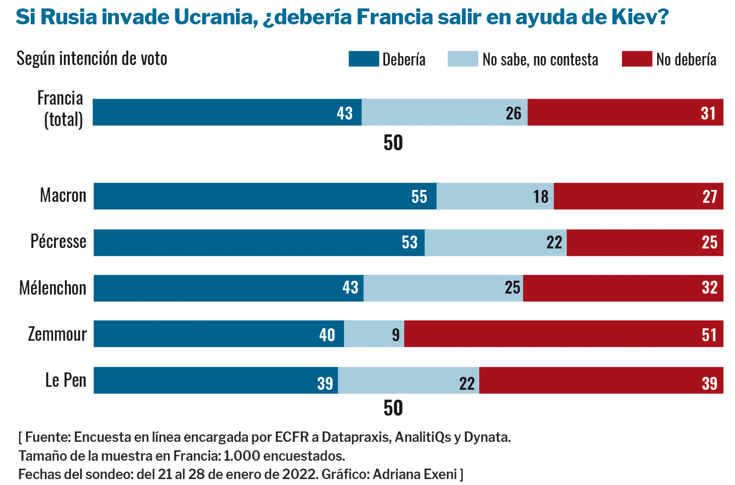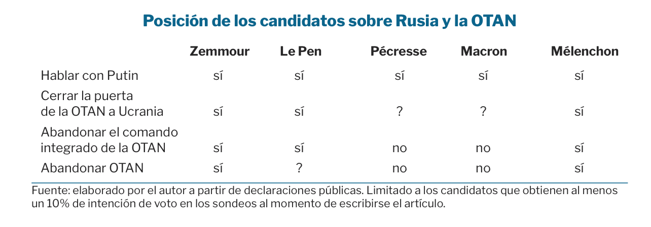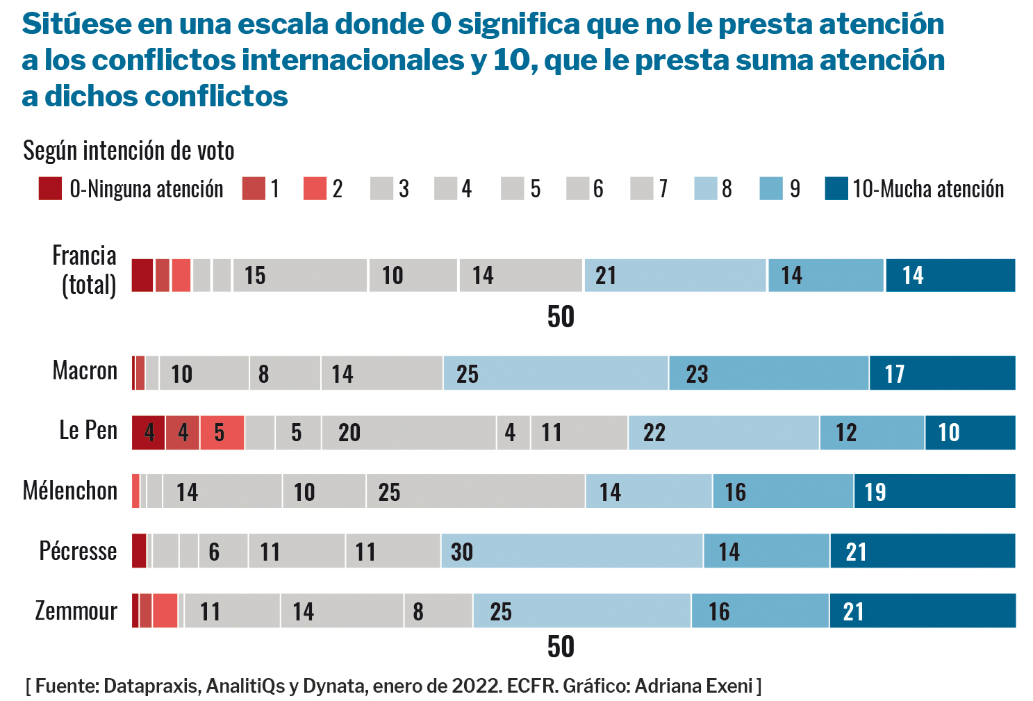 «La política internacional rara vez aparece en las campañas electorales nacionales, y Francia no es una excepción. Pero con la invasión rusa de Ucrania y la fuerte implicación de Emmanuel Macron en los esfuerzos internacionales previos destinados a evitar la guerra, los asuntos exteriores han entrado en el centro de la campaña presidencial francesa». Paweł Zerka. Presidenciales bajo el espectro de la guerra.