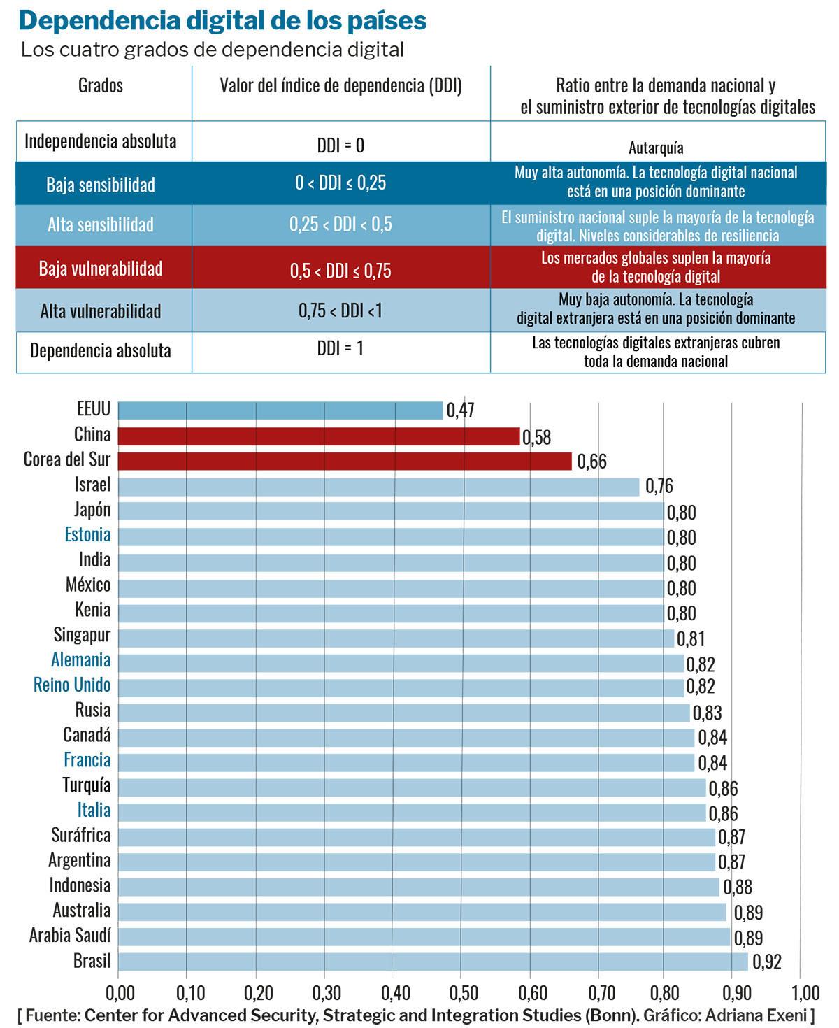 «A pesar de sus iniciativas para ordenar el mercado digital y el ciberespacio y para invertir en tecnología, la UE no es considerada una potencia digital. Para estar a la altura de los tiempos, debe aprender a ser estratégica.» Andrea García Rodríguez. Una política digital dual para la UE.