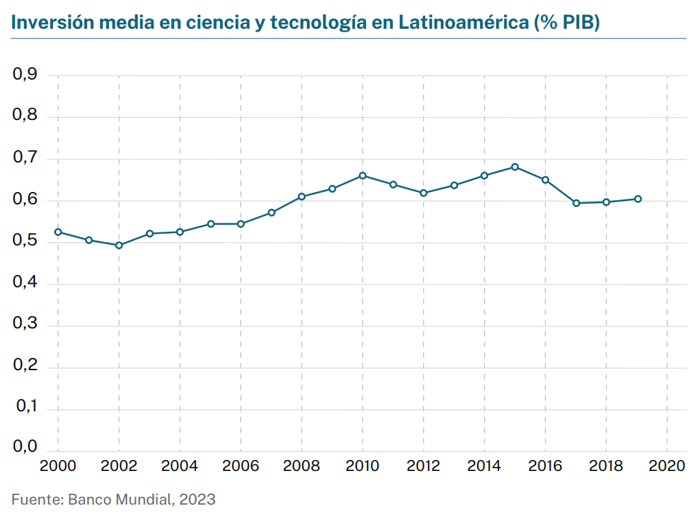 Las inversiones en Investigación, Desarrollo e Innovación (I+D+i), en la región son fuertemente dependiente de los Estados, ya que, salvo contadas excepciones, fundamentalmente circunscriptas a cuestiones puntuales de corto plazo, la industria privada no realiza este tipo de financiamiento. En ese aspecto Latinoamérica esta fuertemente rezagada respecto de los valores referidos al PIB que se dan en otras regiones, principalmente Estados Unidos, Europa y Asia Oriental.