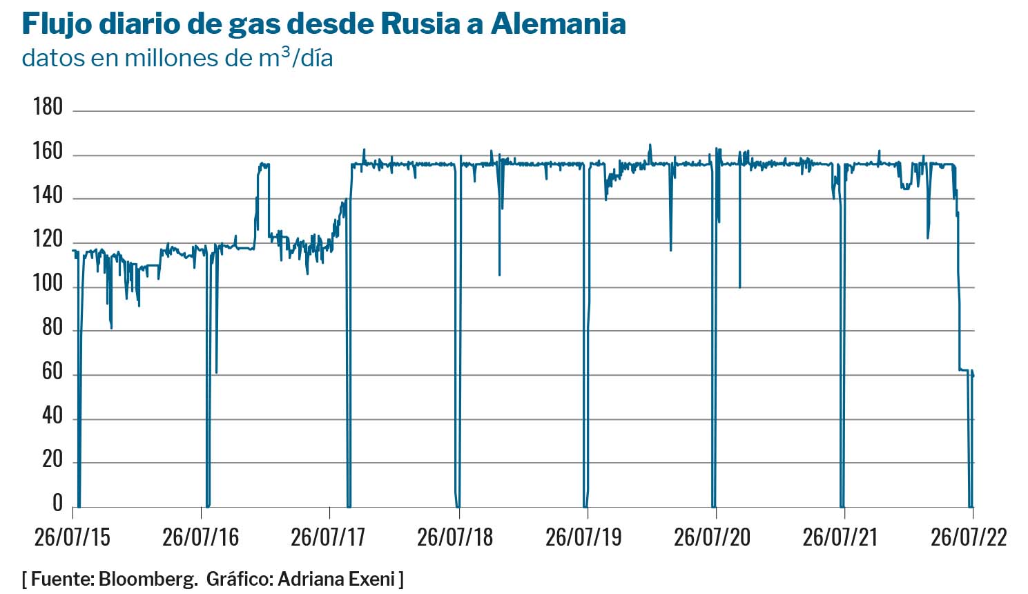 La magnitud del reto energético al que se enfrenta Europa es evidente en los dilemas alemanes. El país, donde el gas ruso representa más de un cuarto del total de gas consumido, se plantea alargar la vida de sus centrales nucleares, al tiempo que sigue apostando por las muy contaminantes plantas de carbón.