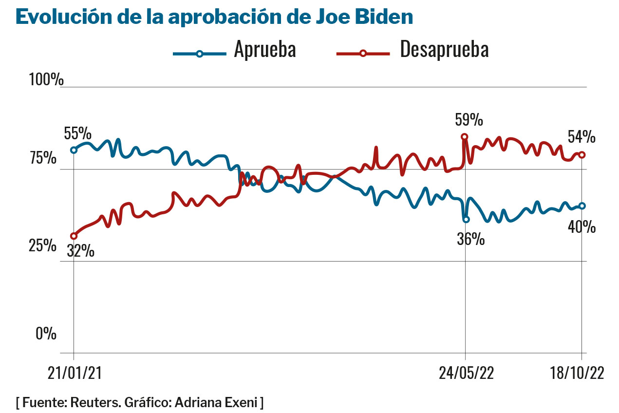 Con una inflación por encima del 8% interanual desde el comienzo de la guerra en Ucrania, uno de tres estadounidenses considera la economía el principal problema de su país. La caída de popularidad de Joe Bideny la escalada de los precios hace prever que los republicanos tomarán el control de la Cámara de Representantes en las elecciones del 8 de noviembre.
