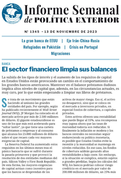 La subida de los tipos de interés y el aumento de los requisitos de capital en Estados Unidos están provocando un cambio en el comportamiento de los grandes bancos americanos. Mantener en el balance préstamos dudosos implica altos niveles de capital que, además, en las circunstancias actuales, es muy caro, por lo que están empezando a limpiar sus libros de préstamos.