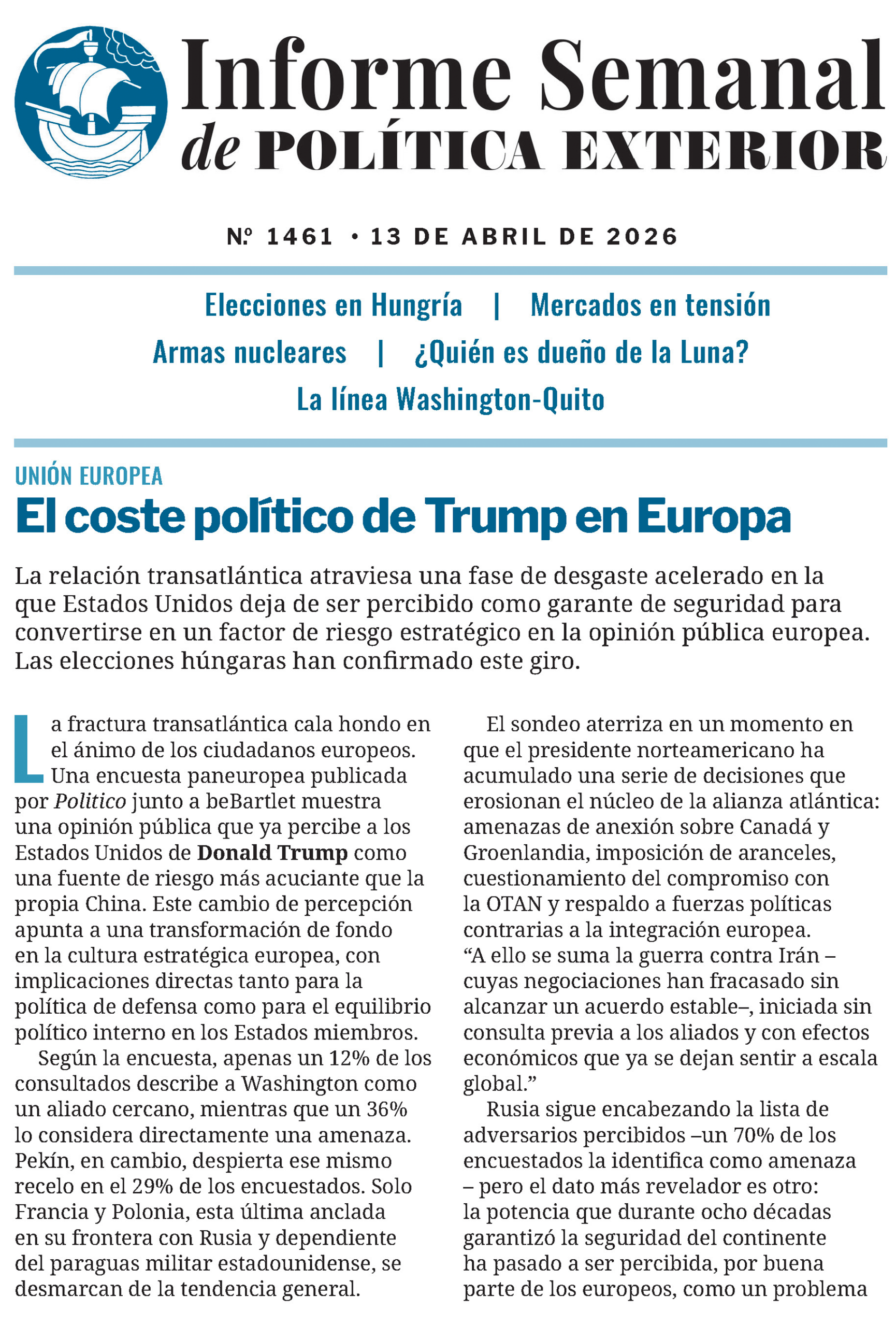 Informe Semanal de Política Exterior