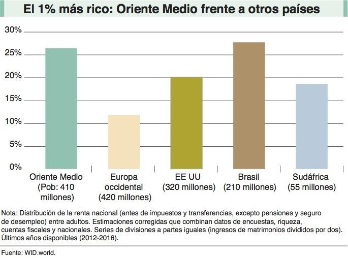 En Oriente Medio, el 10% de los más ricos recibe más del 60% de los ingresos totales de la región, frente al 36% en Europa…