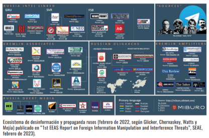Más allá de RT y ‘Sputnik News’, prohibidos en la UE desde 2022, Rusia posee un ecosistema de propaganda completo, una colección de canales y plataformas de comunicación, oficiales y no, para crear y amplificar narrativas falsas.