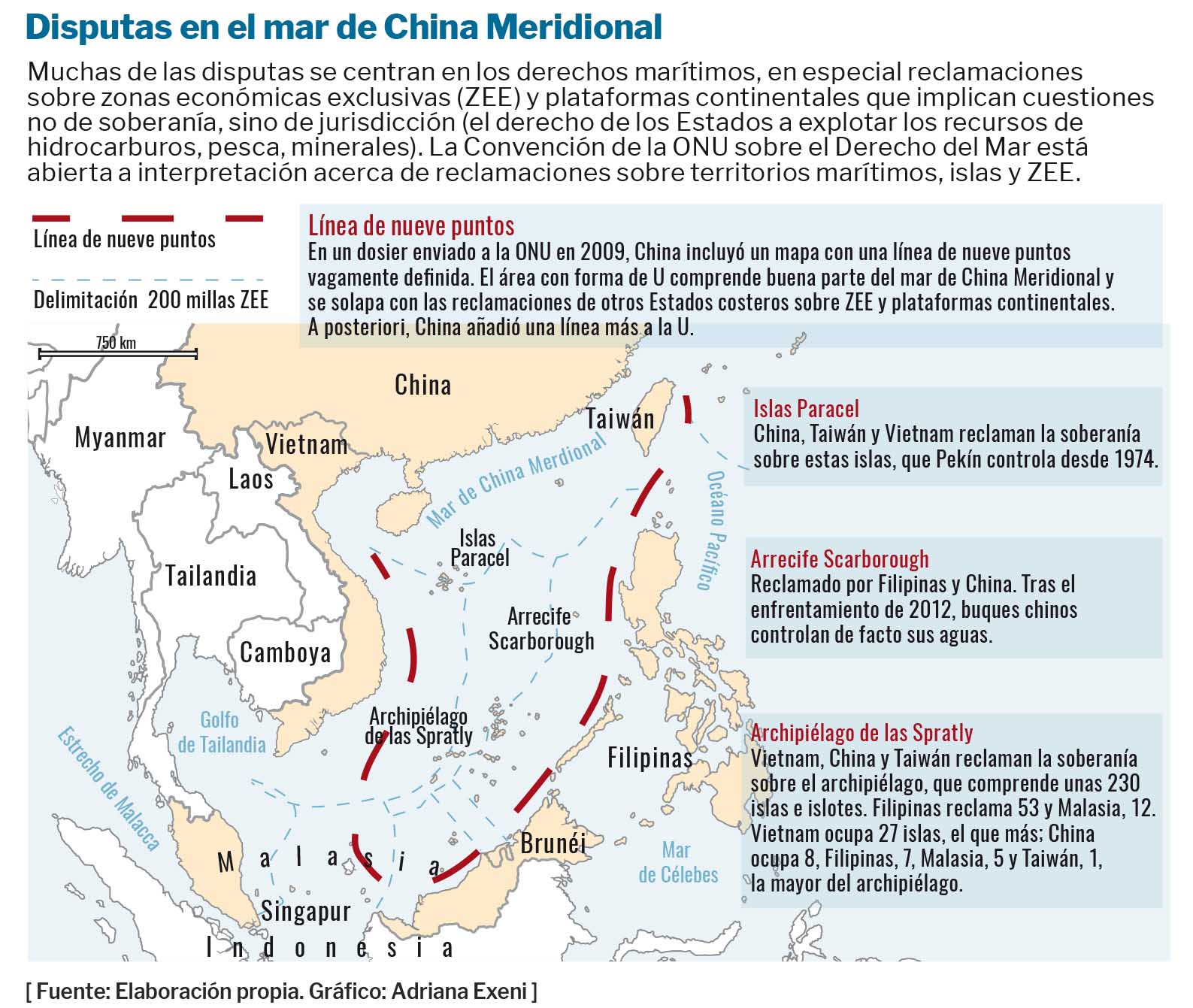 En una comparecencia ante el Senado de EEUU en abril de 2018, el jefe del comando Indo-Pacífico del Pentágono, almirante Philip Davidson, aseguró que con su construcción de ocho islas artificiales en el Mar de China Meridional, en las que ha establecido bases aéreas y navales, China ya controla la zona “en todos los escenarios posibles”, salvo el de una guerra abierta con EEUU. Un excomandante de la Flota del Pacífico, almirante Dennis Blair, cree, por su parte, que China está realizando una especie de “diplomacia militar”. Xi dejó de hablar con Donald Trump hasta que la Casa Blanca no se comprometió explícitamente con el principio de “una China”.