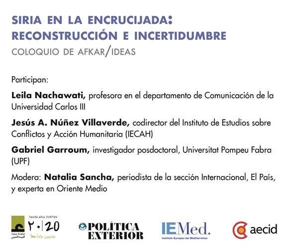 En este coloquio organizado junto al IEMed y la Casa Árabe, con la colaboración de la AECID, hablamos de los desafíos de la transición siria y de Oriente Próximo en general.