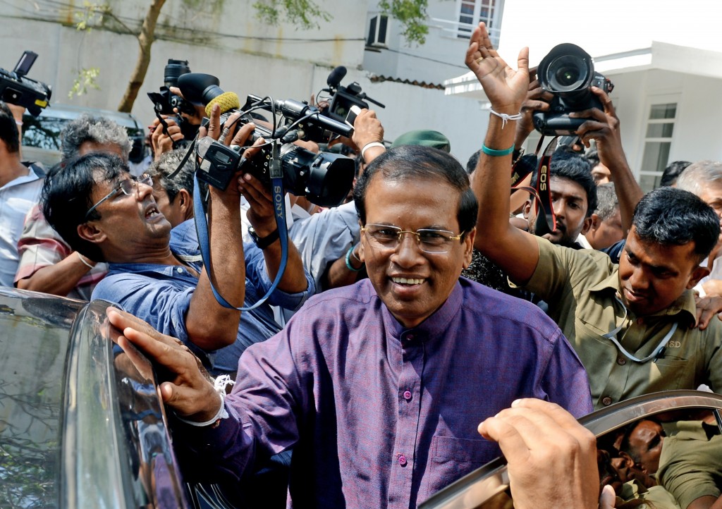 Sirisena, ministro de salud del gobierno, decidió desvincularse de Rajapksa y presentarse él mismo a presidente. Su campaña se ha basado en la lucha contra la corrupción, objetivo que pretende conseguir cambiando el sistema presidencialista por uno parlamentario, restando poderes a la figura presidencial. Además, se presenta como un hombre sencillo y rural, calificándose a sí mismo con un granjero.