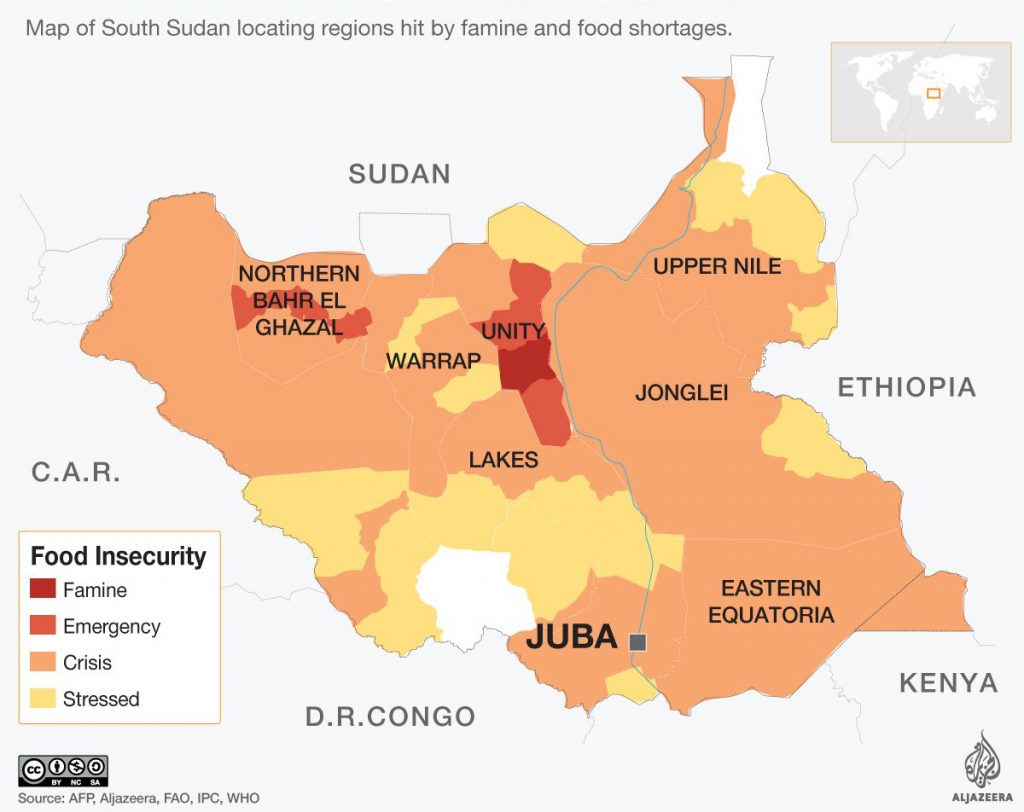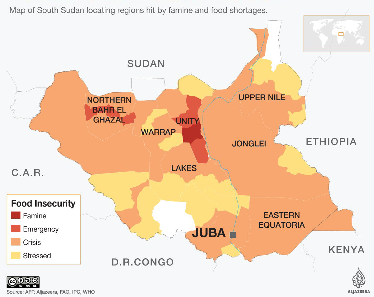 Crisis nutricional en Sudán del Sur. Fuente: Al Jazeera