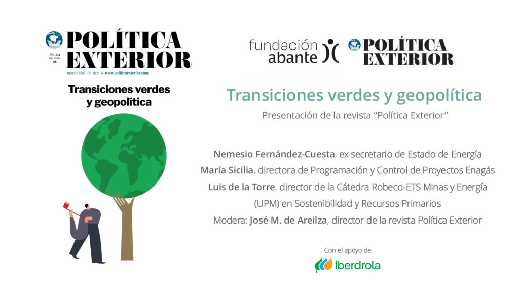 Para hablar de hasta qué punto la geopolítica actual es resistente al verde y qué se puede hacer para mantener el objetivo de impulsar las distintas transiciones energéticas y económicas en todo el planeta, te invitamos a la mesa redonda que tendrá lugar el martes 22 de abril de 2025 (Abante-19h).