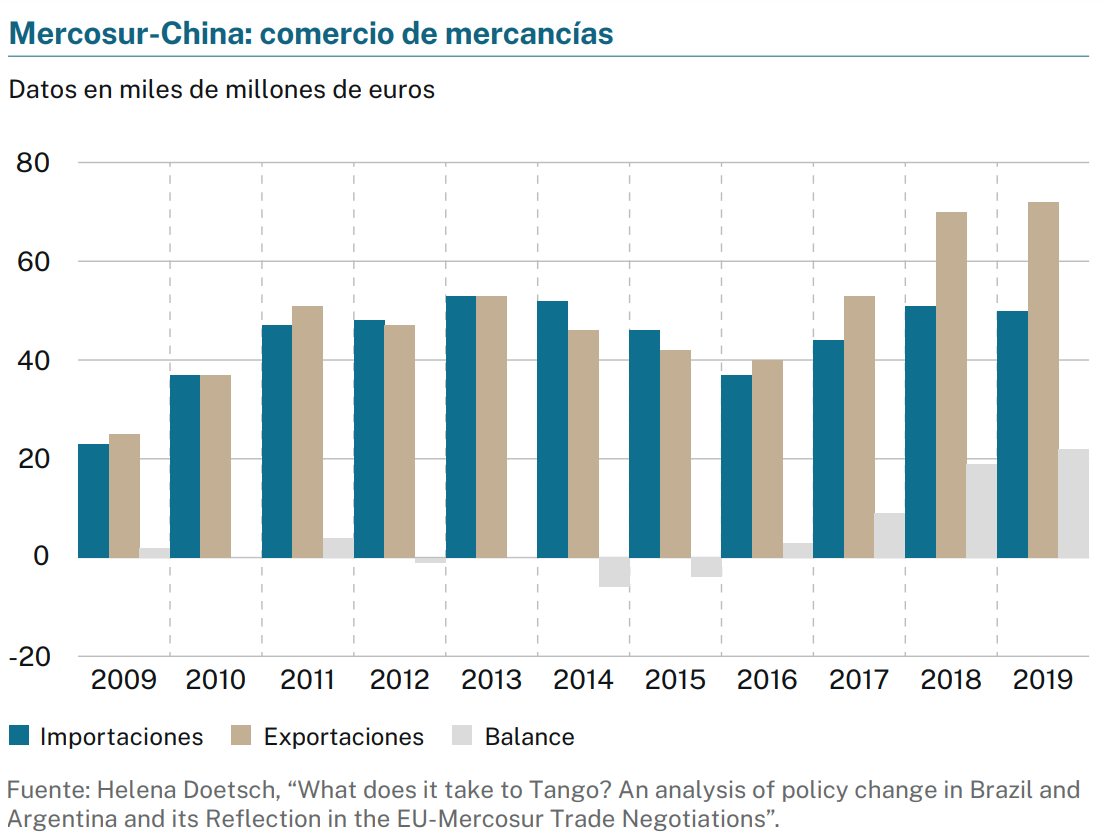 La asimetría existente en el área ambiental, donde se pretende que una región sancione o compense a la otra, se replica en el plano geopolítico. Mientras Mercosur trata de diversificar sus relaciones externas desde la periferia, la UE busca no ser relegada por otras potencias. Así, desde el punto de vista europeo, las negociaciones evolucionaron de la ambición de equilibrar a EEUU a la necesidad de equilibrar a China.