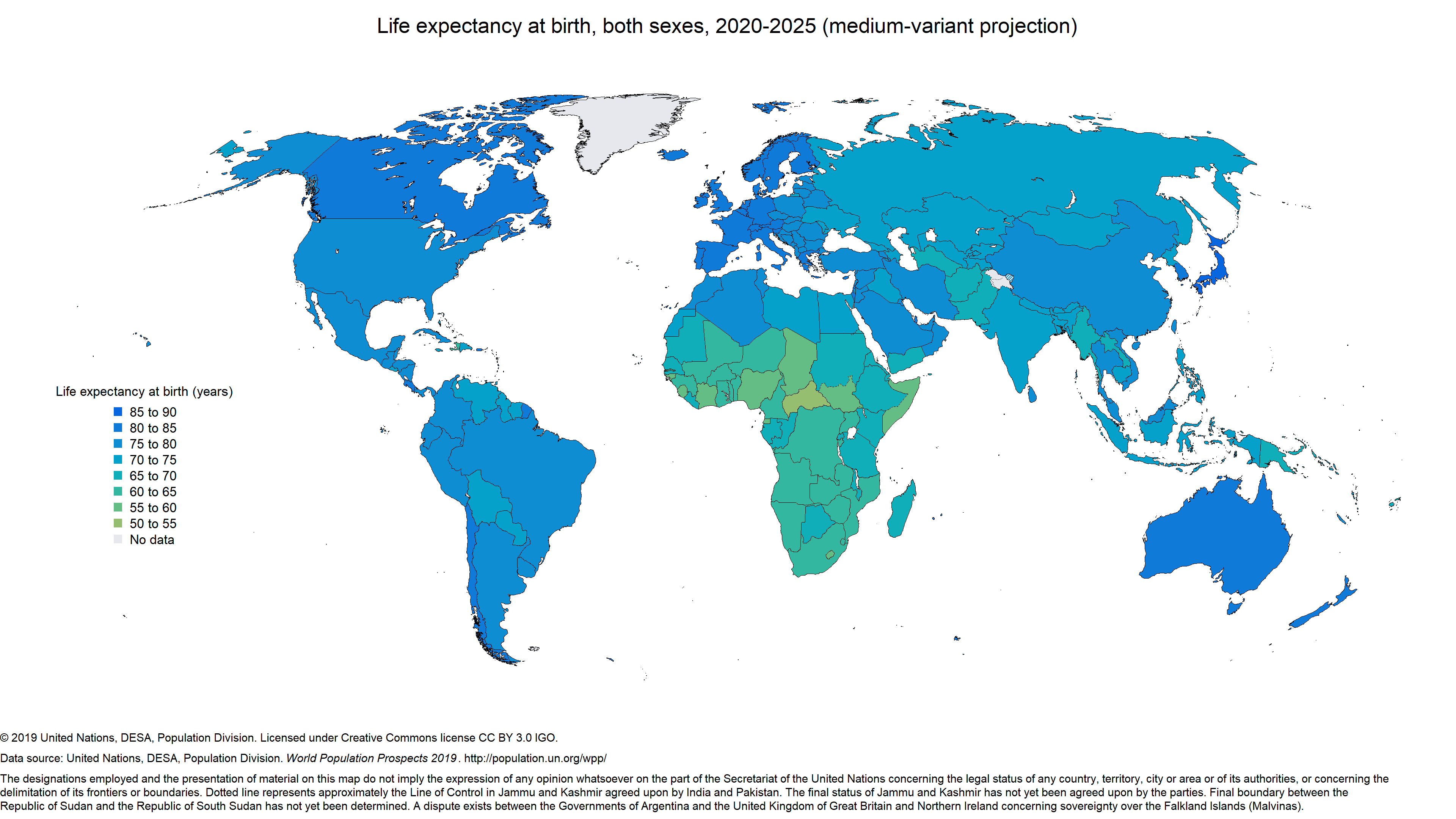 Expectativa de vida al nacer, ambos sexos, 2020-2025/ONU